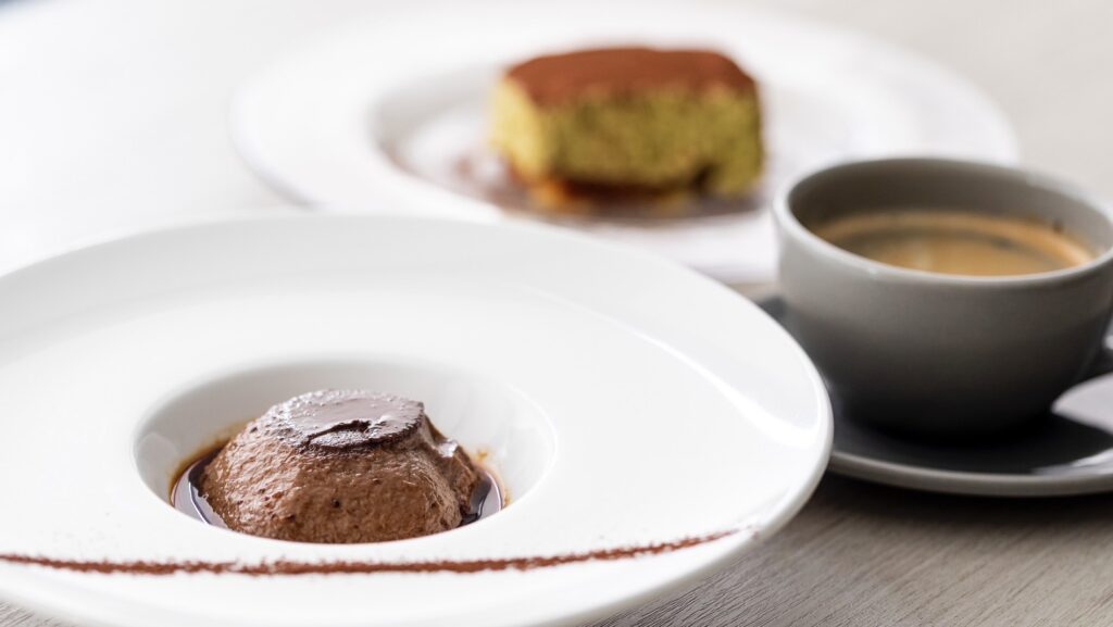 ランチタイムにはサラダ・ドリンク・ドルチェがセットになった今しか味わうことのできない期間限定パスタもある。