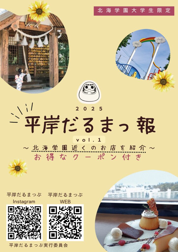 北海学園大学生に豊平、平岸エリアを知ってほしい!という思いを持って完成した平岸エリア限定の情報誌「平岸だるまっ報」
